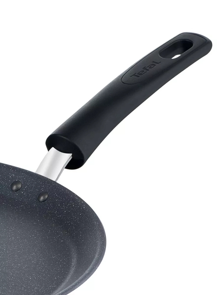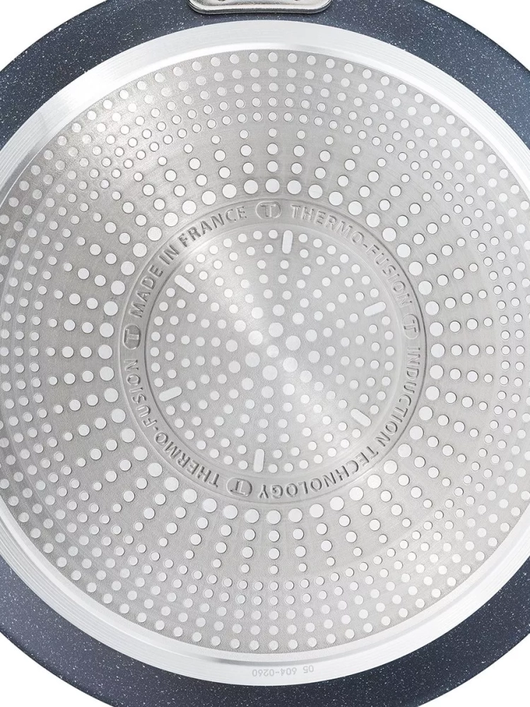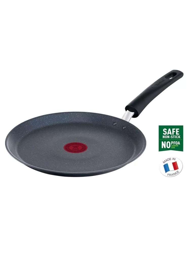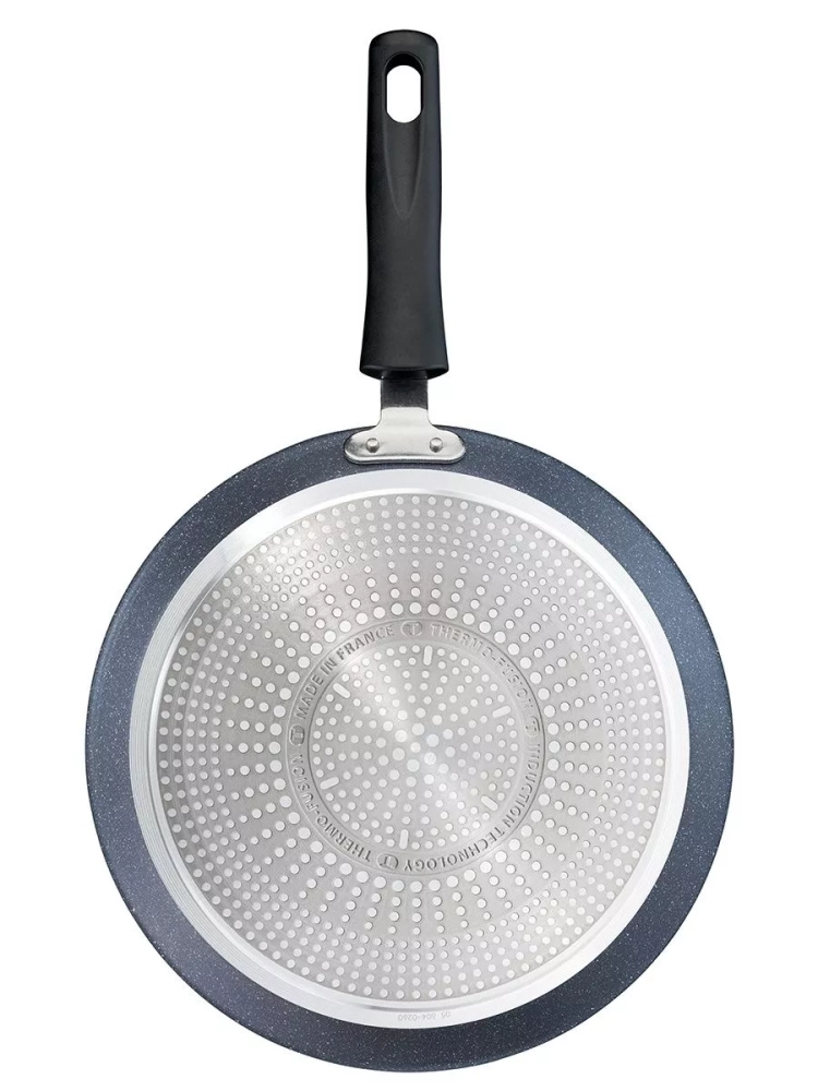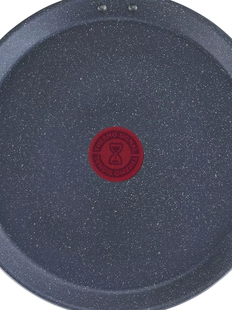 Главное преимущество алюминиевой сковороды – антипригарное покрытие Mineralia+, усиленное минеральными частицами, что обеспечивает долговечность и превосходные антипригарные свойства, даже при жарке без масла, вы получите качественный результат. Кроме того, покрытие кухонного инвентаря абсолютно безопасно, так как производится без добавления PFOA, свинца и кадмия. Большая сковородка Тефаль оснащена инновационным индикатором температуры Thermo-Signal, который подскажет оптимальный момент для начала готовки оладий и панкейков, гарантируя идеальную текстуру и аппетитный внешний вид блюд, а индукционное дно Thermo-Fusion быстро и равномерно нагревает стенки по всей поверхности. Края посуды для дома имеют специальную форму для комфортного и точного слива лишней жидкости без брызг.