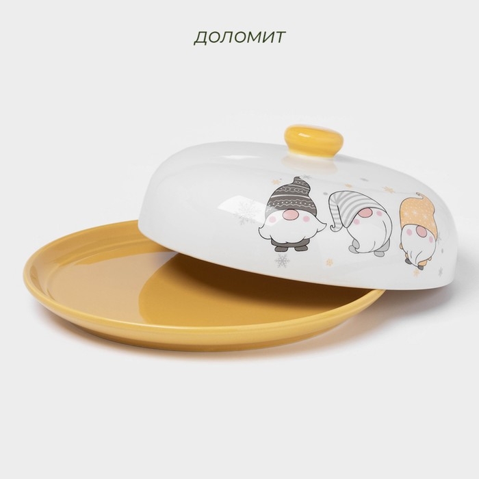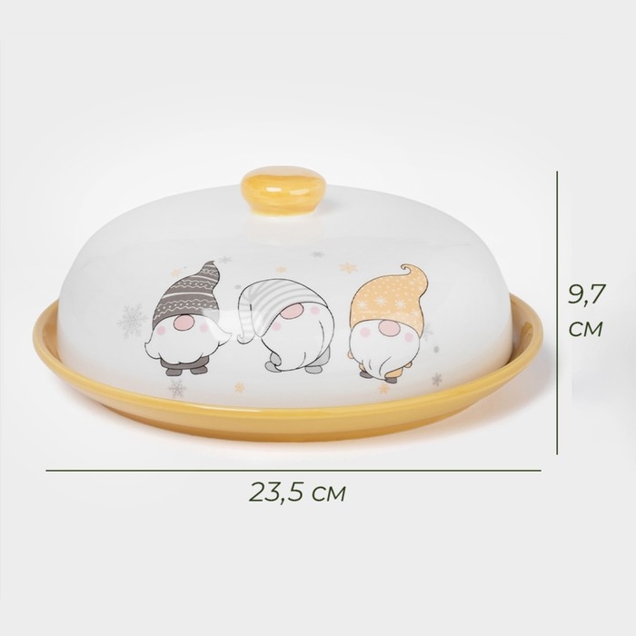 Блинница новогодняя Доляна «Домашние гномики», d=23 см, керамика, цвет белый