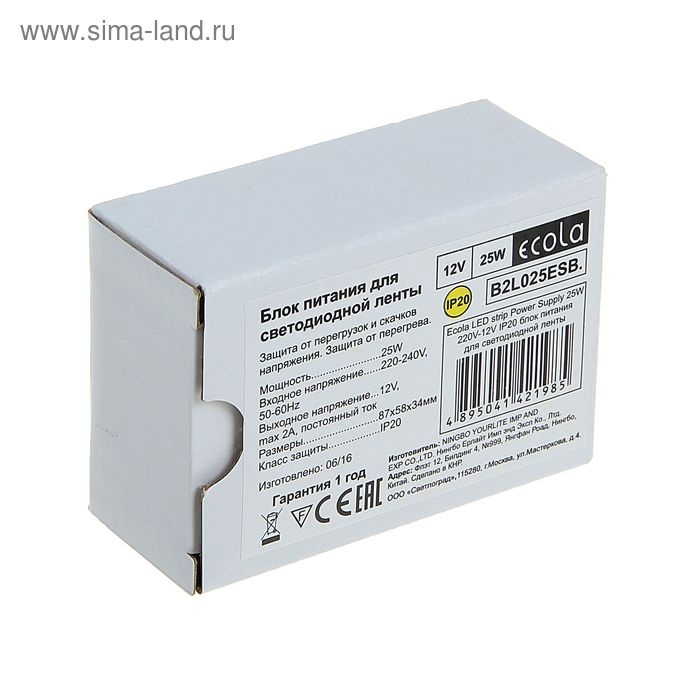 Блок питания Ecola для светодиодной ленты 12 В, 25 Вт, IP20