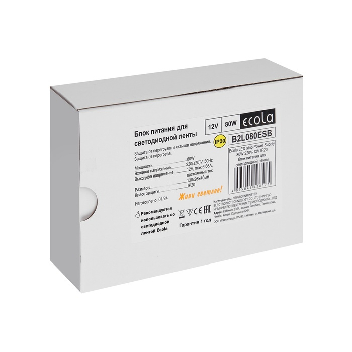 Блок питания Ecola для светодиодной ленты 12 В, 80 Вт, IP20