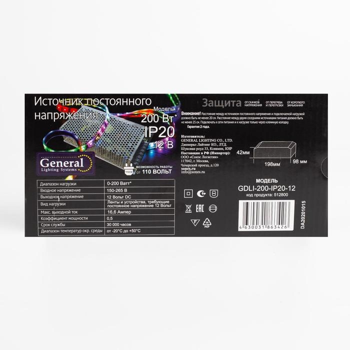 Блок питания General для светодиодной ленты 12 В, 200 Вт, IP20