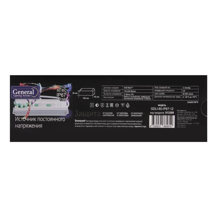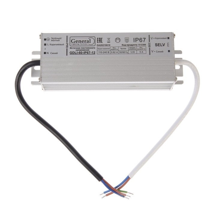 Блок питания General для светодиодной ленты 12 В, 60 Вт, IP67