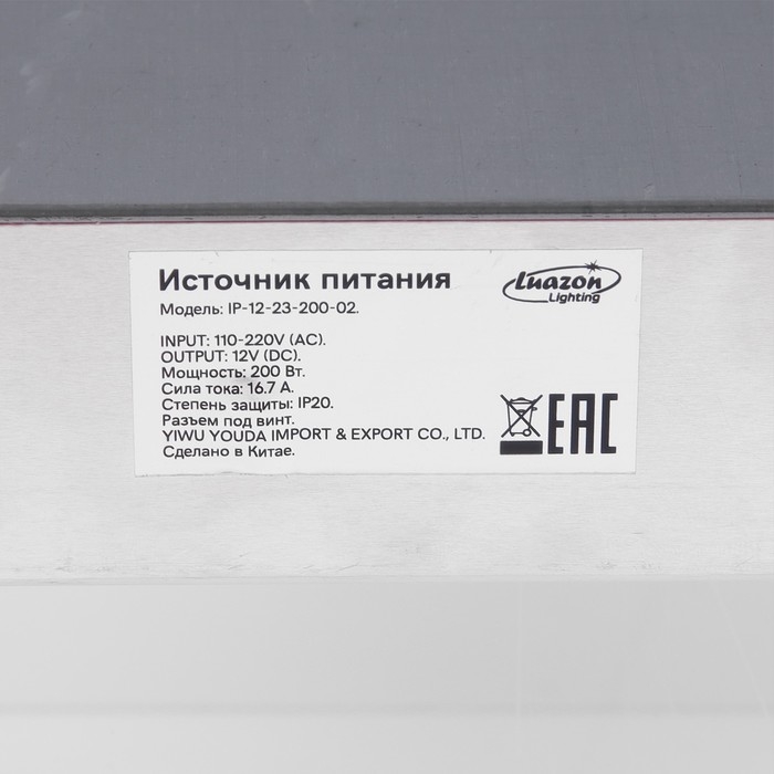 Блок питания Luazon Lighting для светодиодной ленты 12 В, 200 Вт, IP20
