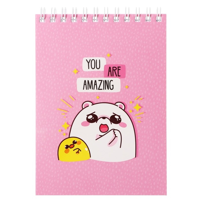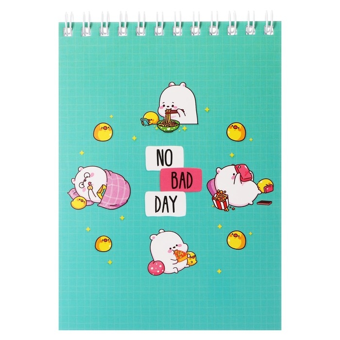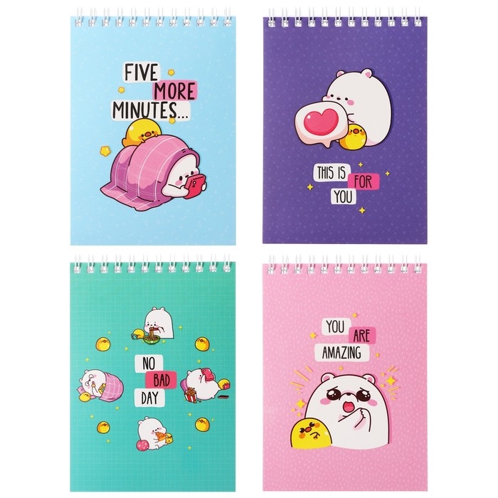 Блокнот А6 60 листов в клетку MESHU "Happy time", матовая ламинация, выборочный УФ-лак