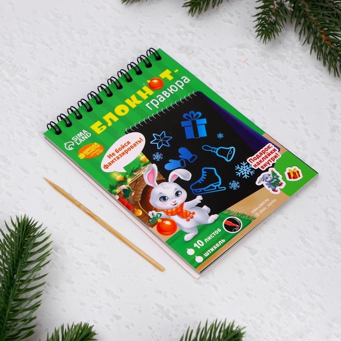 Блокнот - гравюра на новый год «Кролик»,10 листов, лист наклеек