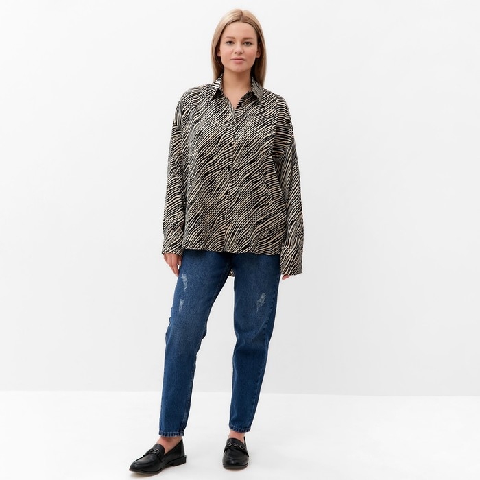 Блузка женская, цвет экрю, принт зебра, размер 48