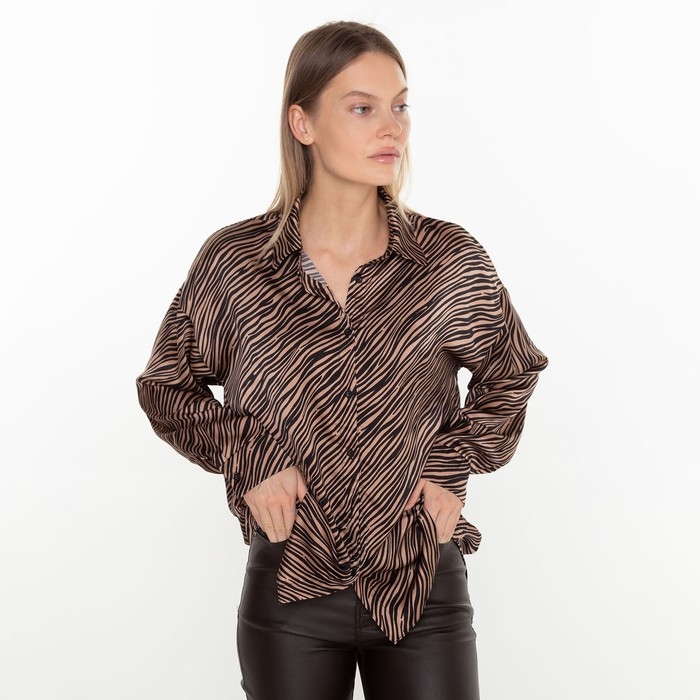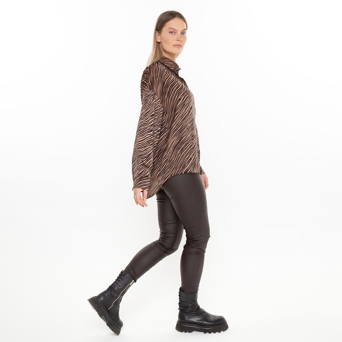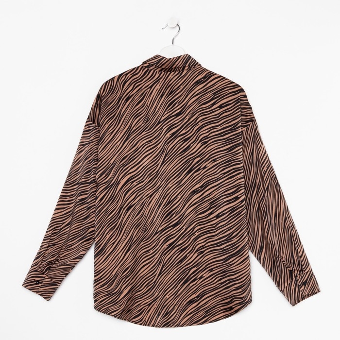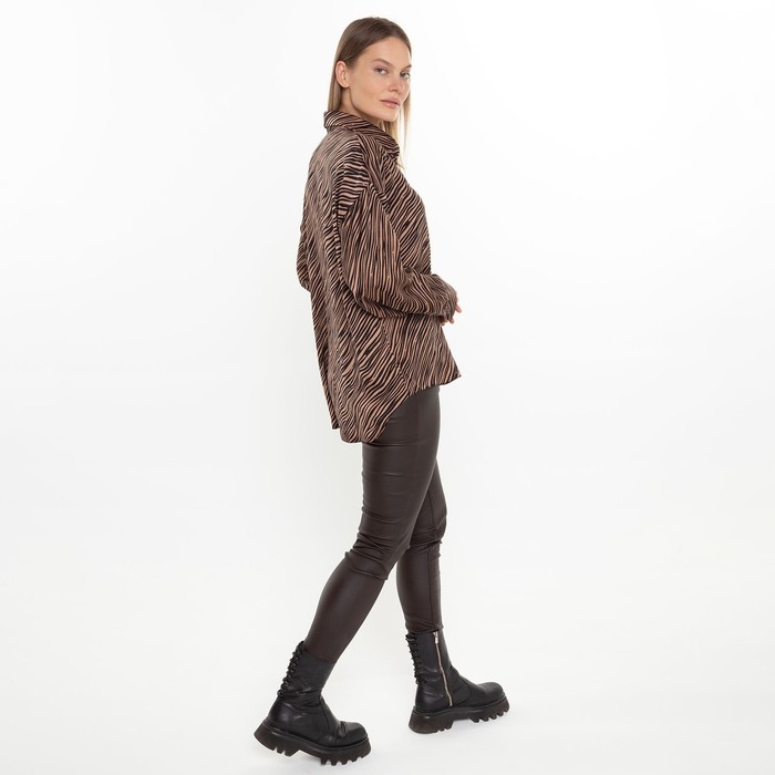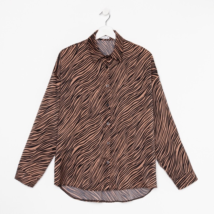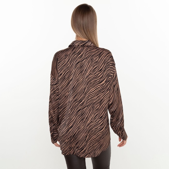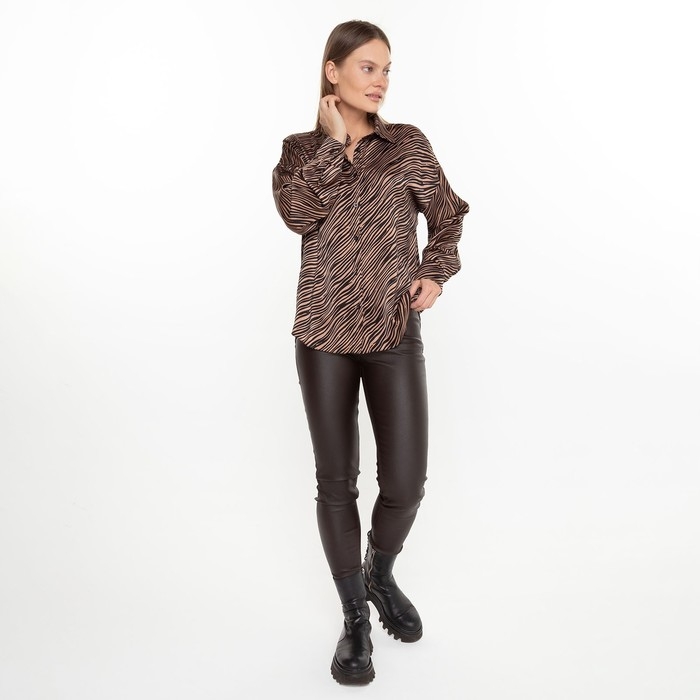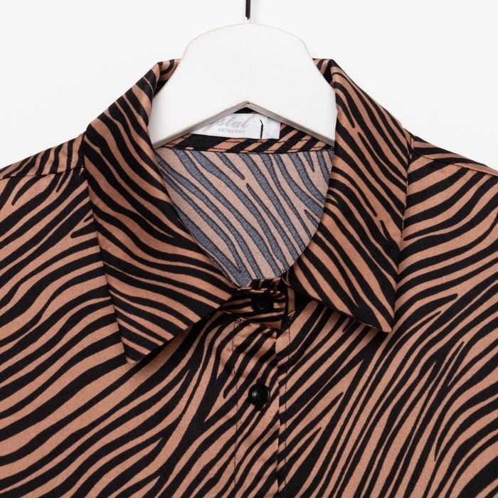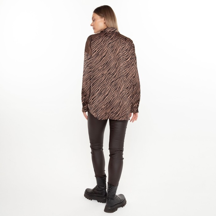 Блузка женская, цвет кофе, принт зебра, р-р 44