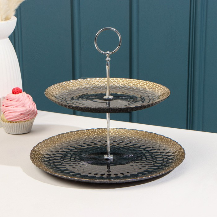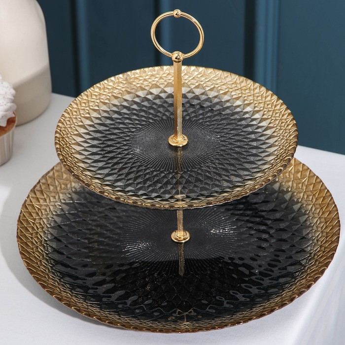 Блюдо 2-х ярусное «Барокко», d=21/28 см, цвет чёрный с золотом