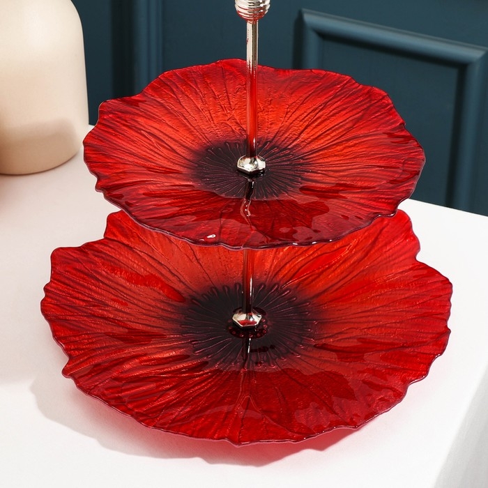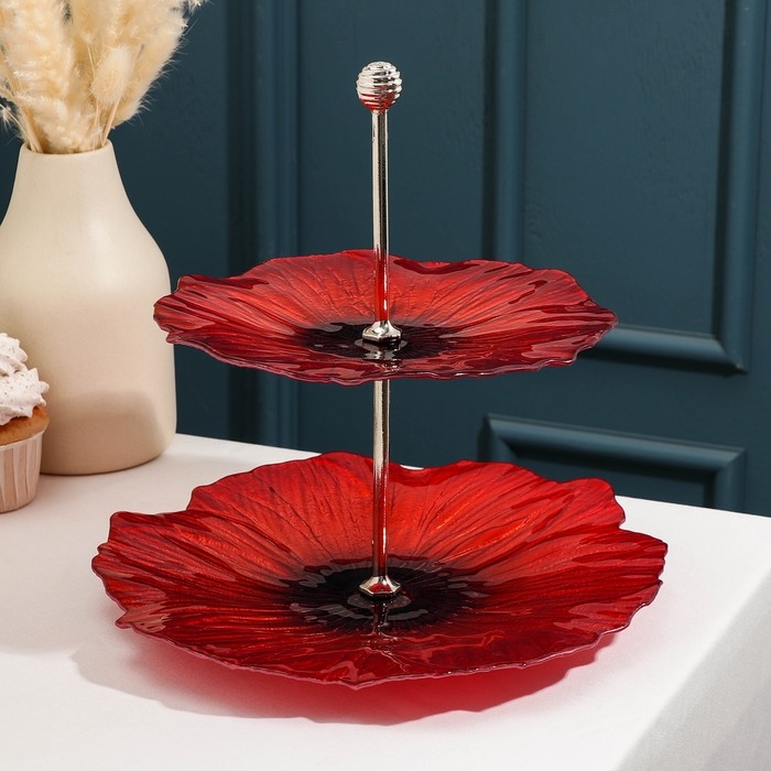 Блюдо 2-х ярусное «Маки», d=21/28 см, цвет красный