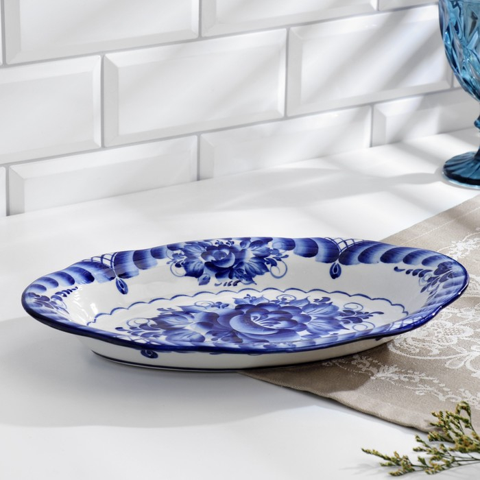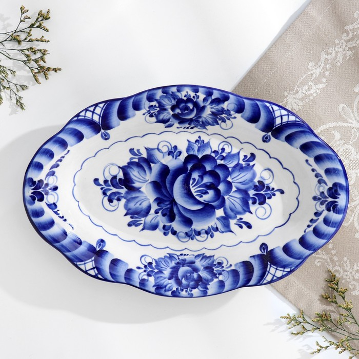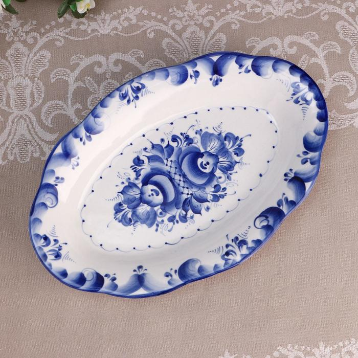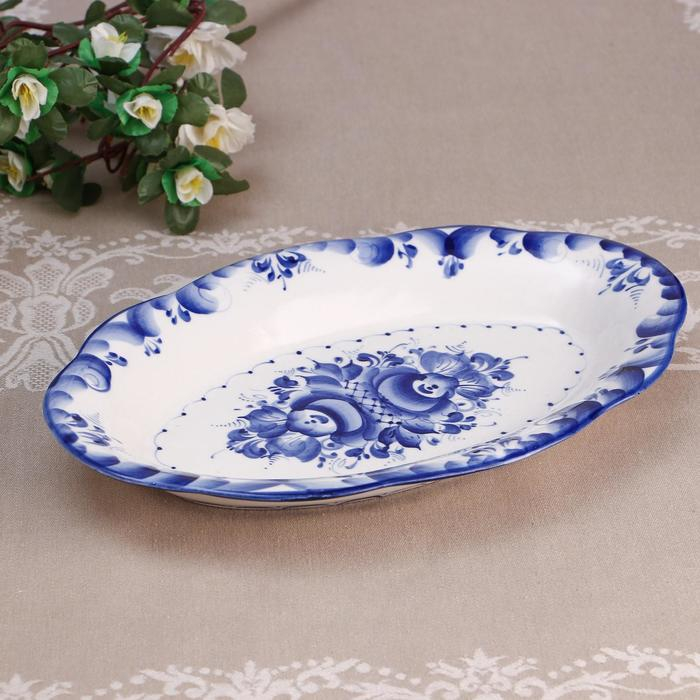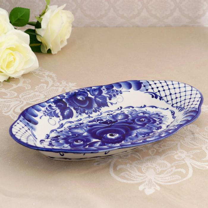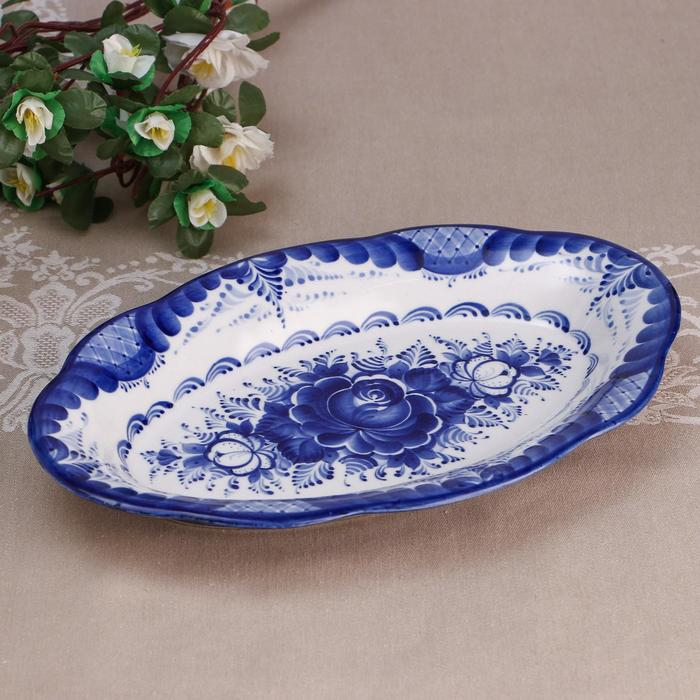 Блюдо «Цветы», 30×19×3,5 см, гжель