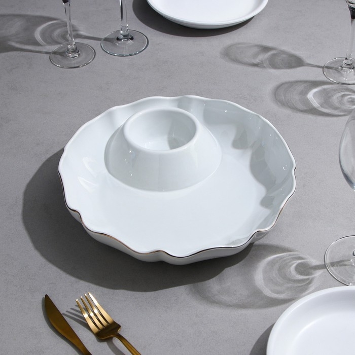 Блюдо фарфоровое с соусником Доляна White Label, d=25 см, цвет белый