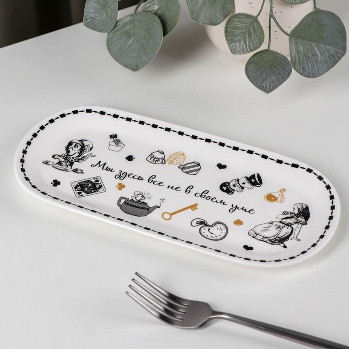 Блюдо овальное фарфоровое «Безумное чаепитие», 25×11,5 см