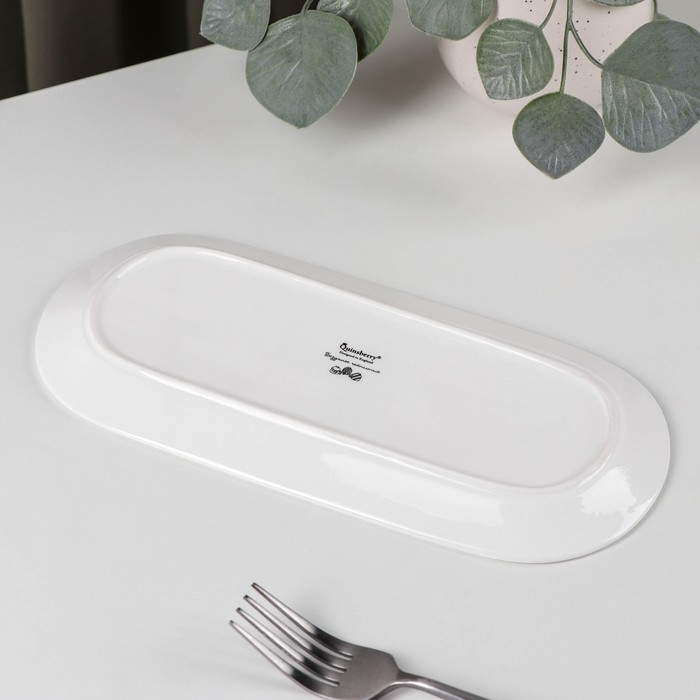 Блюдо фарфоровое овальное c утолщённым краем Доляна White Label, 30,5×20×3 см, цвет белый