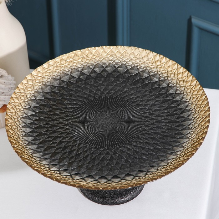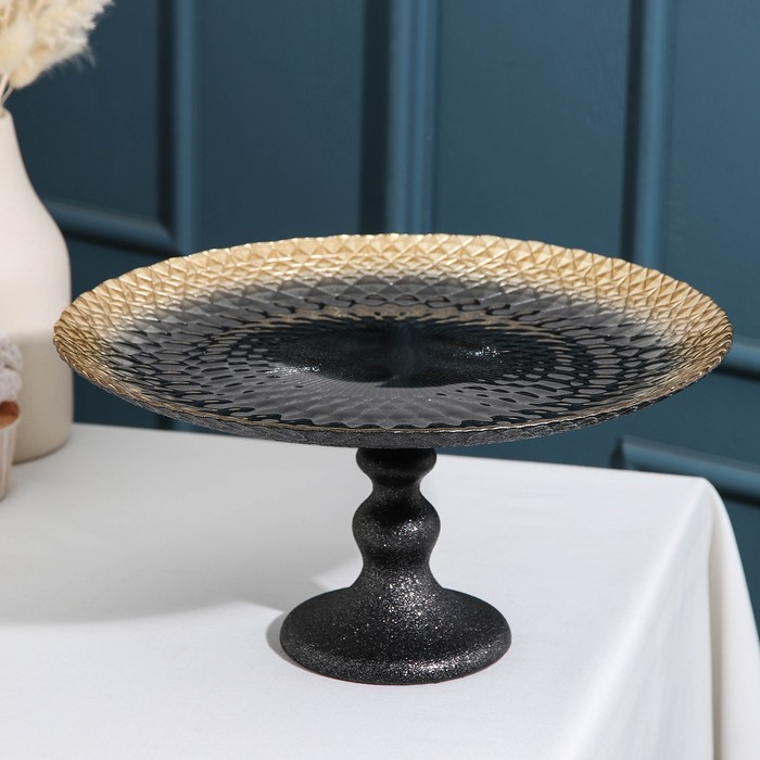 Блюдо сервировочное «Барокко», d=28 см, на ножке, цвет чёрный с золотом