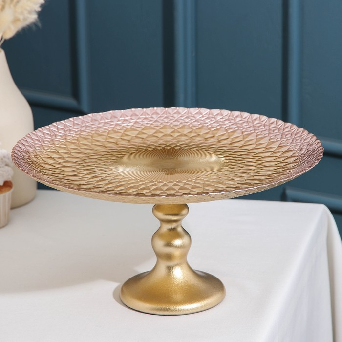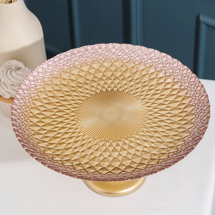 Блюдо сервировочное «Барокко», d=28 см, на ножке, цвет золотой с розовым