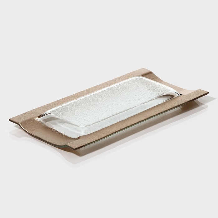 Блюдо стеклянное сервировочное «Сияние», 32×16×2,5 см, цвет золотой
