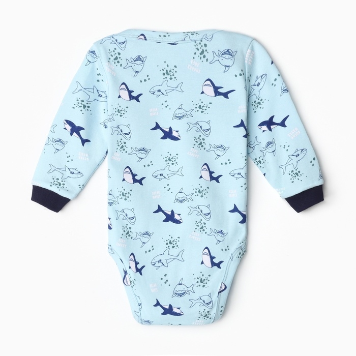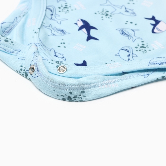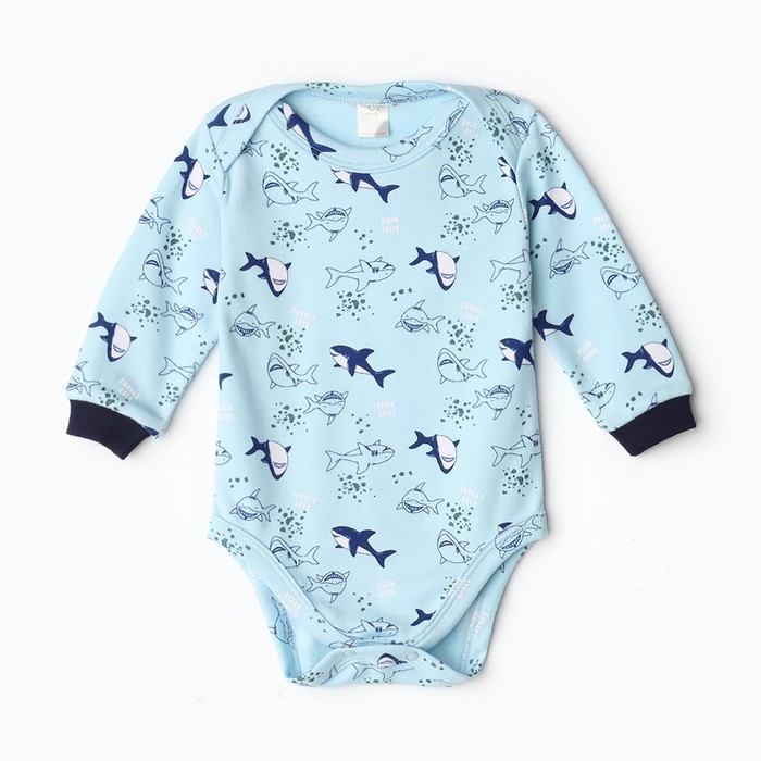 Боди детское на кнопках, цвет голубой/акулы, рост 68 см