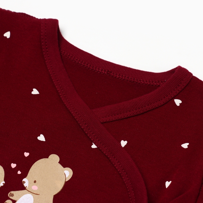 Боди-кимоно детское с длинным рукавом "Мишка", цвет бордовый, рост 56