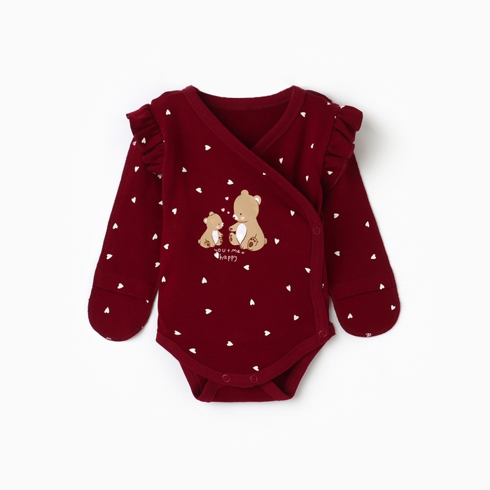 Боди-кимоно детское с длинным рукавом "Мишка", цвет бордовый, рост 62