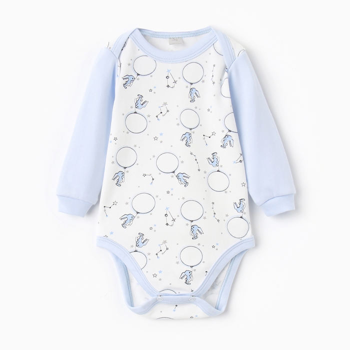 Боди с длинным рукавом, цвет голубой/зайцы, рост 74 см
