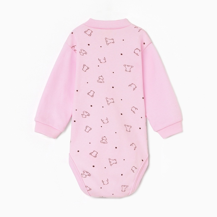 Боди с длинным рукавом, цвет медведь розовый, рост 68 см