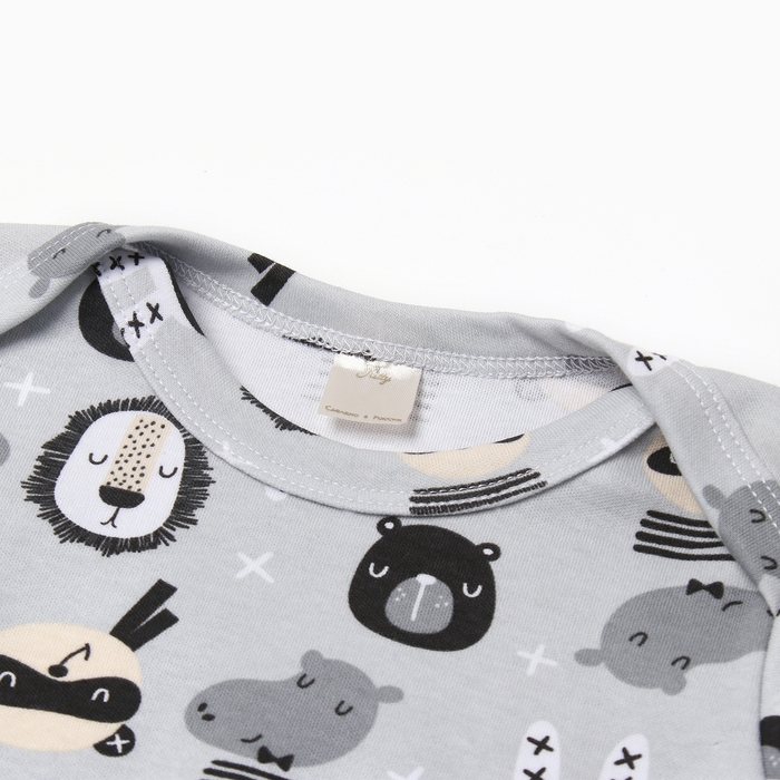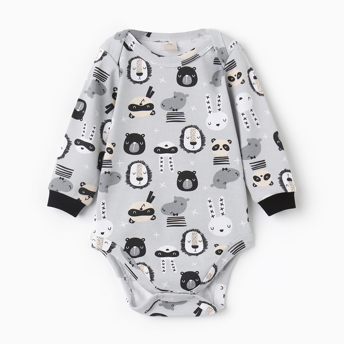 Боди с длинным рукавом, цвет серый/зверята, рост 56 см