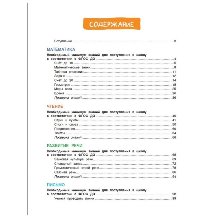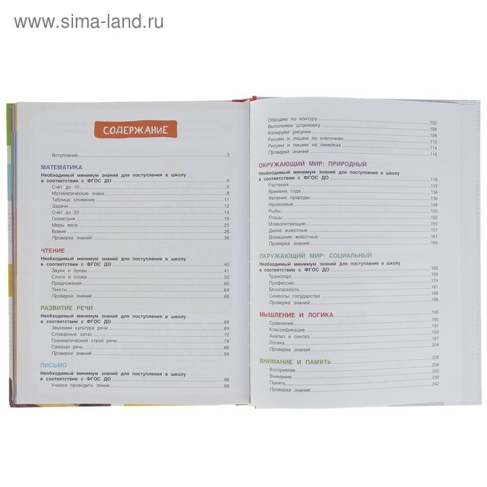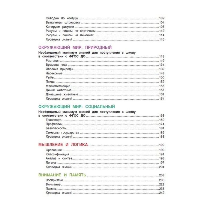 Книга адресована родителям и воспитателям для занятий со старшими дошкольниками - детьми 5-7 лет. Данное издание полностью отвечает требованиям Федерального государственного стандарта дошкольного образования (ФГОС ДО).Познавательные и занимательные материалы книги с яркими иллюстрациями и активными заданиями помогут взрослым в подготовке ребенка к школьному обучению.Все основные направления по подготовке к школе представлены в одном издании: математика, чтение, развитие речи, письмо, окружающий мир, развитие мышления, логики, внимания и памяти.После каждого познавательного блока ребенок сможет испытать себя, выполняя задания в разделе "Проверка знаний".Каждый раздел сопровождается вводной страницей "Необходимый минимум знаний для поступления в школу в соответствии с ФГОС ДО".