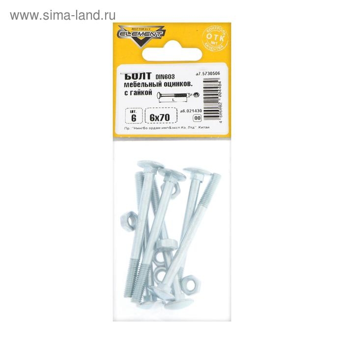 Болт мебельный Element, DIN603, 6х70 мм, с гайкой, оцинкованный, на блистере 6 шт.