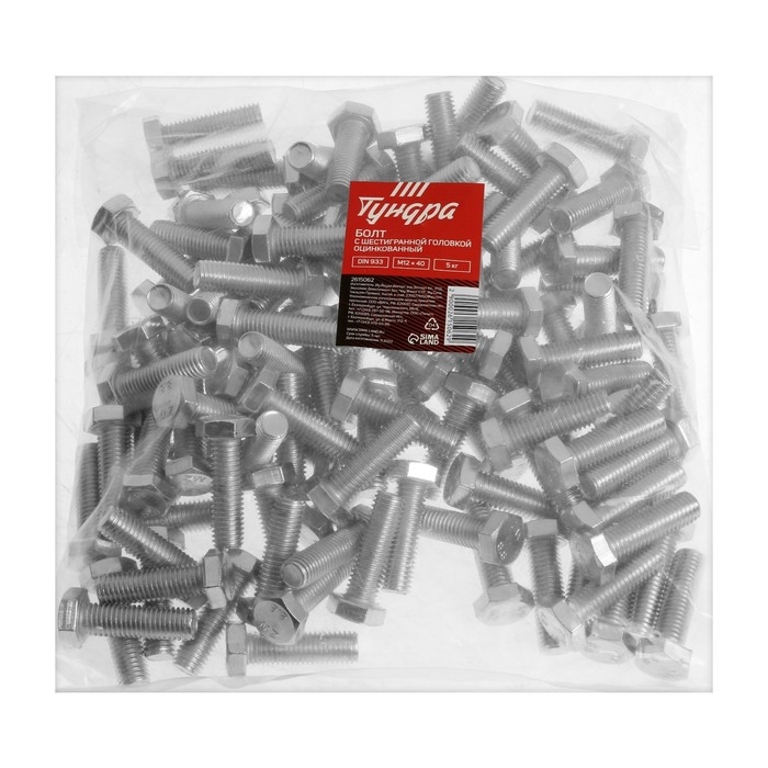 Болт ТУНДРА, оцинкованный, DIN 933, класс прочности 8.8, М12х40 мм, 5 кг