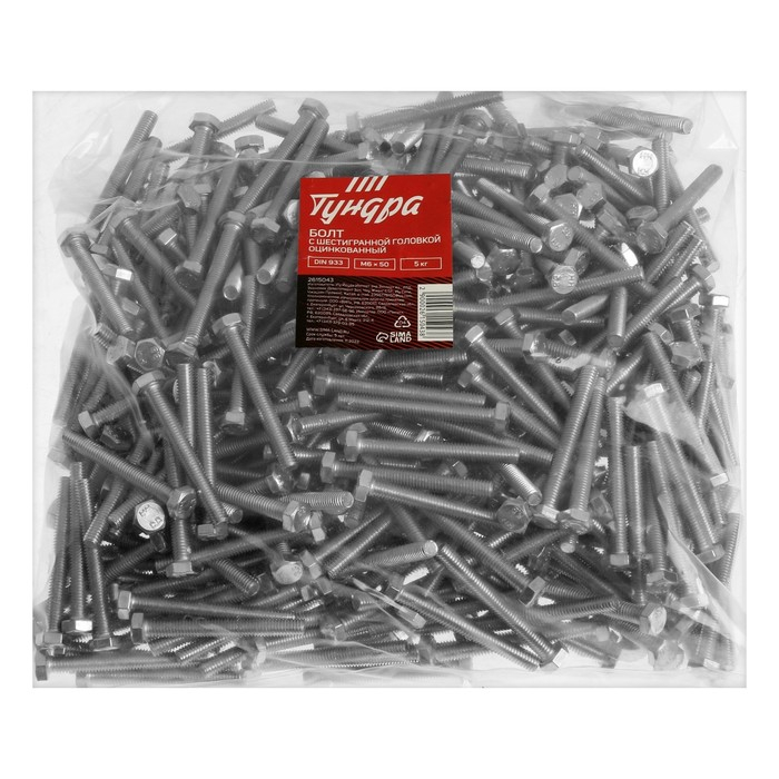 Болт ТУНДРА, оцинкованный, DIN 933, класс прочности 8.8, М6х50 мм, 5 кг