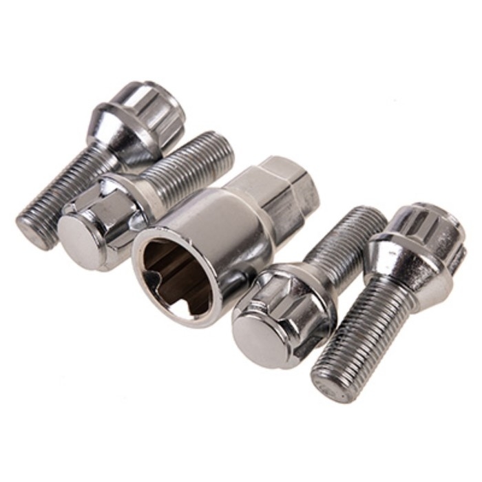 Болты секретки Skyway, M12х1,25х28 конус, 5 луч, 1 кл, хром, набор 4 шт