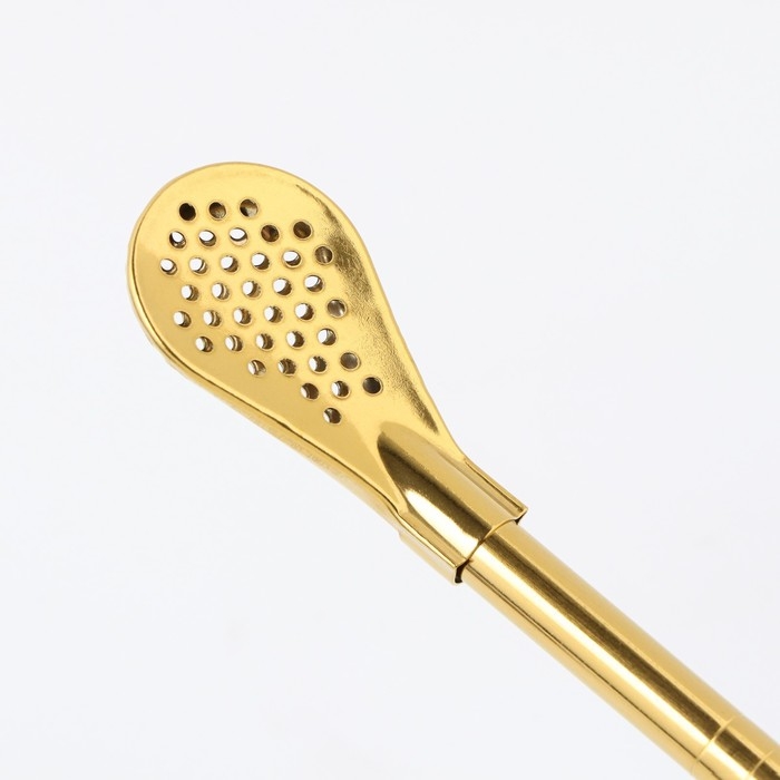 Бомбилья для чая Йерба Мате мини, l-18.5 см, с ёршиком, золото