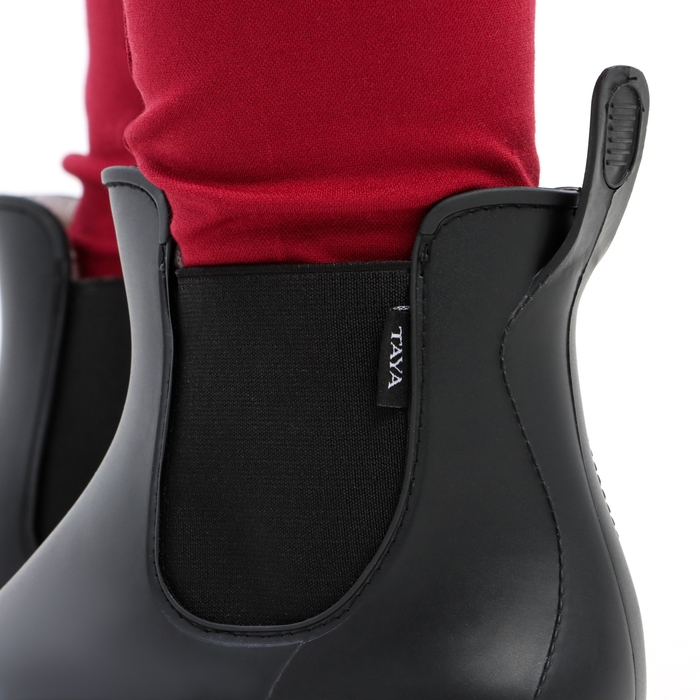 Ботинки для верховой езды бренда TAYA equestrianism – это идеальный выбор для тех, кто занимается конным спортом. Изготовлены из качественной полирезины, что гарантирует их долговечность и надежность при ежедневном использовании. Данный материал достаточно мягкий, очень гибкий и при этом не толстый, что обеспечивает комфорт, легкость и подвижность ступней и предотвращает пережимание ноги в работе. Сами по себе ботинки челси являются изначально оптимальным выбором для конников за счет конструкции – такие конные ботинки имеют не очень толстую подошву, что позволяет стопе быть подвижной и находиться в контакте со стременем. При этом важно, чтобы модель имела оригинальную конструкцию: обувь для верховой езды должна иметь небольшой каблук, чтобы не цепляться за амуницию, но и достаточно высокий, чтобы ограничивать полное попадание ноги в стремя. К тому же передняя часть ботинка должна быть точно высотой до голеностопа, чтобы предотвращать «цепляние» выступов на носке обуви за стремя спереди. Всё это мы учли, подобрав соответствующую требованиям форму, и протестировали наши ботинки для конного спорта с помощью тест-групп на практике.