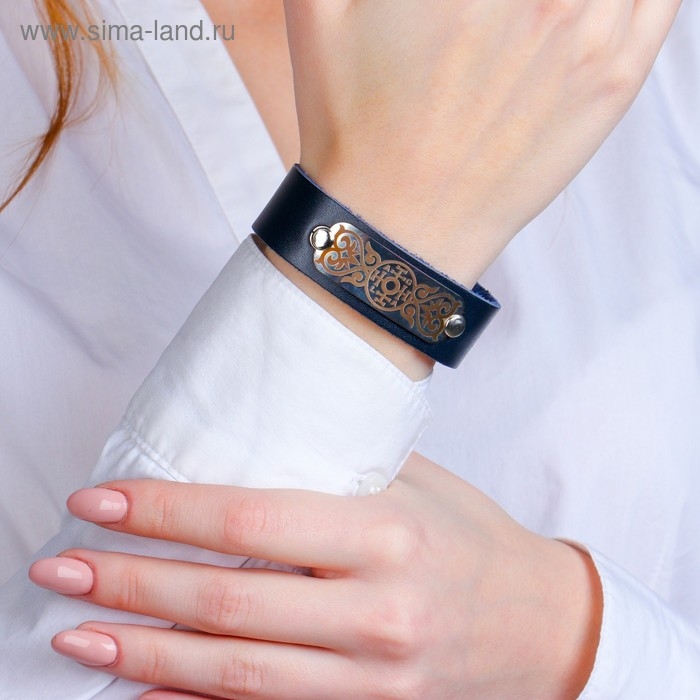 Браслет кожа «Сафари» леопард, цвет чёрно-синий, 22 см