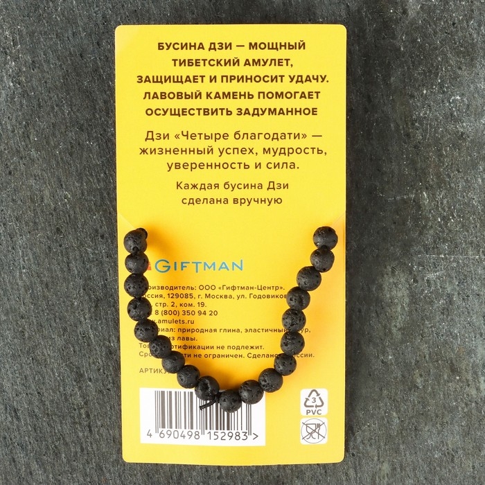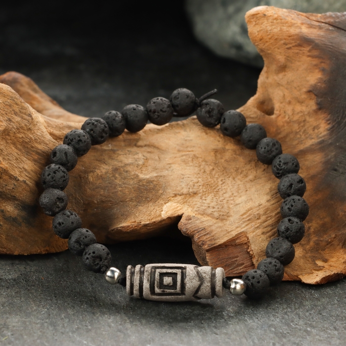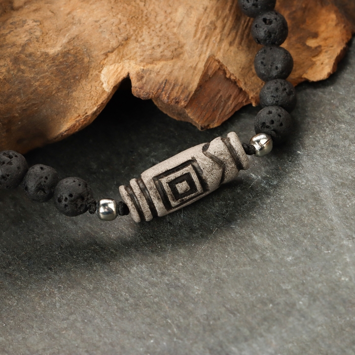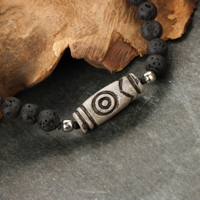 Браслет из лавы с бусиной Дзи «Четыре благодати» №2