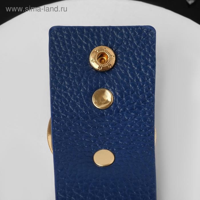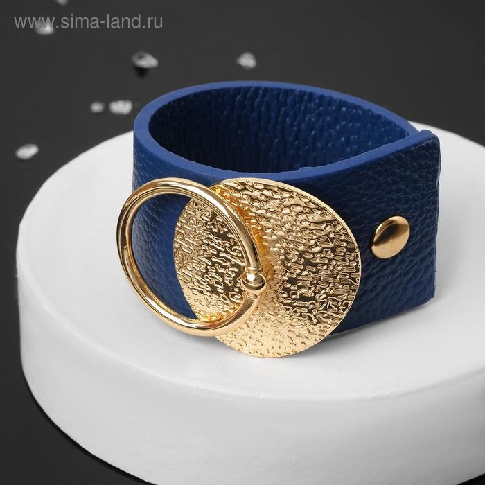 Браслет кожа «Диск» с кольцом, цвет синий в золоте L=21,5