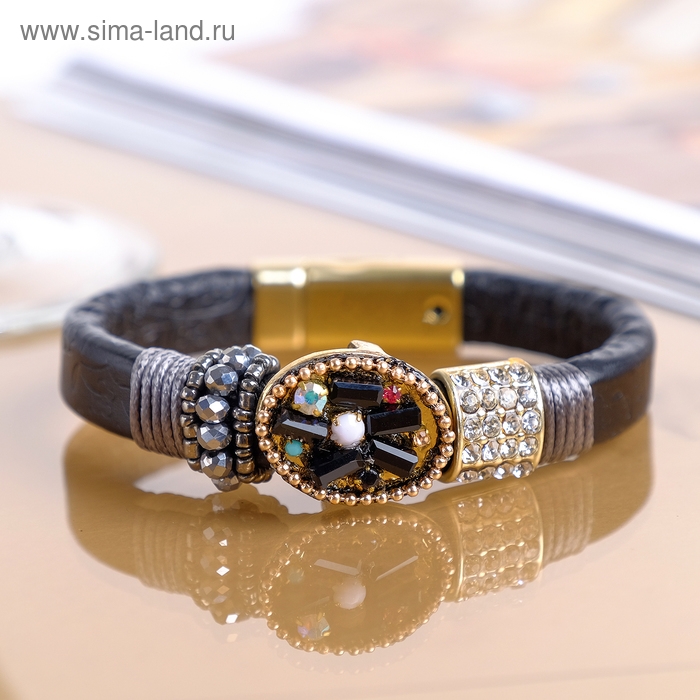 Браслет кожа "Роскошь" овал в бусинах, цвет чёрный в золоте, L=21 см