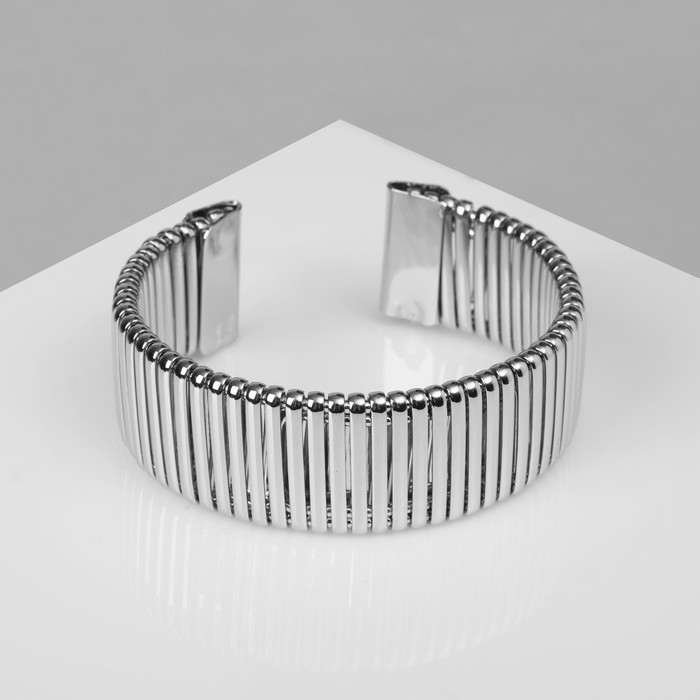 Браслет металл «Рельеф» широкий, 2 см, цвет серебро