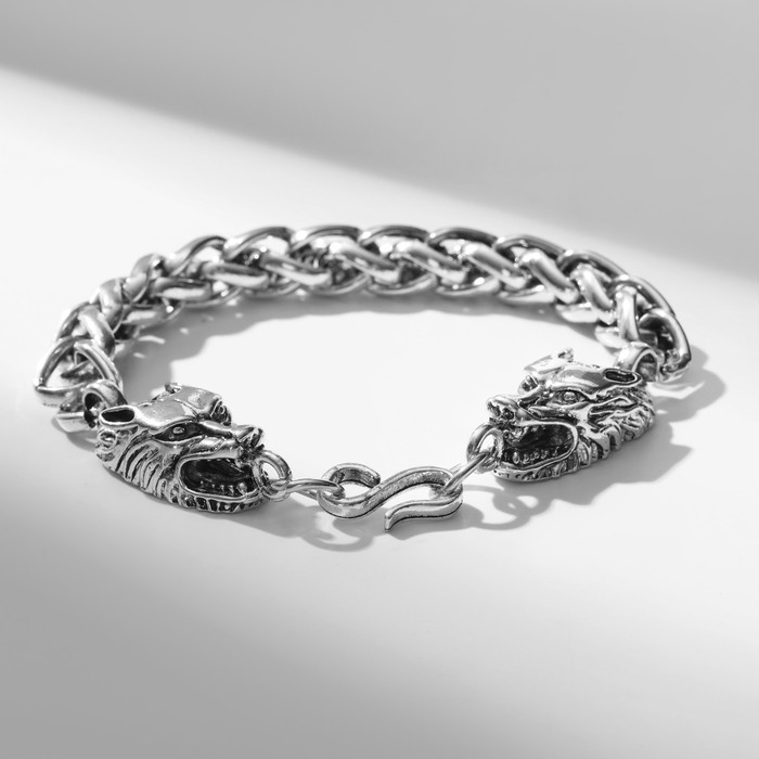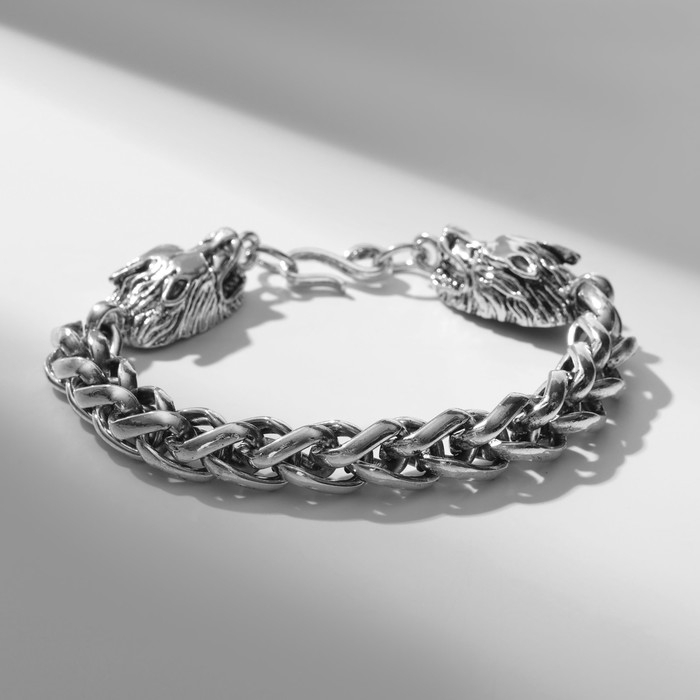 Браслет мужской «Брутал» волки, цвет чернёное серебро, 22 см