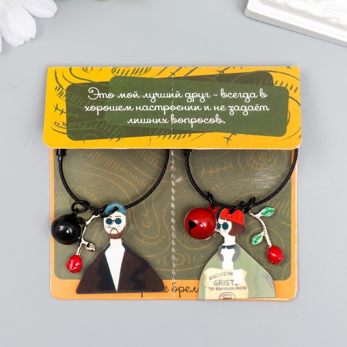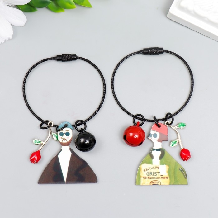 Брелок акрил на тросе с колокольчиком "Парочка в очках леннонах" набор 2 шт