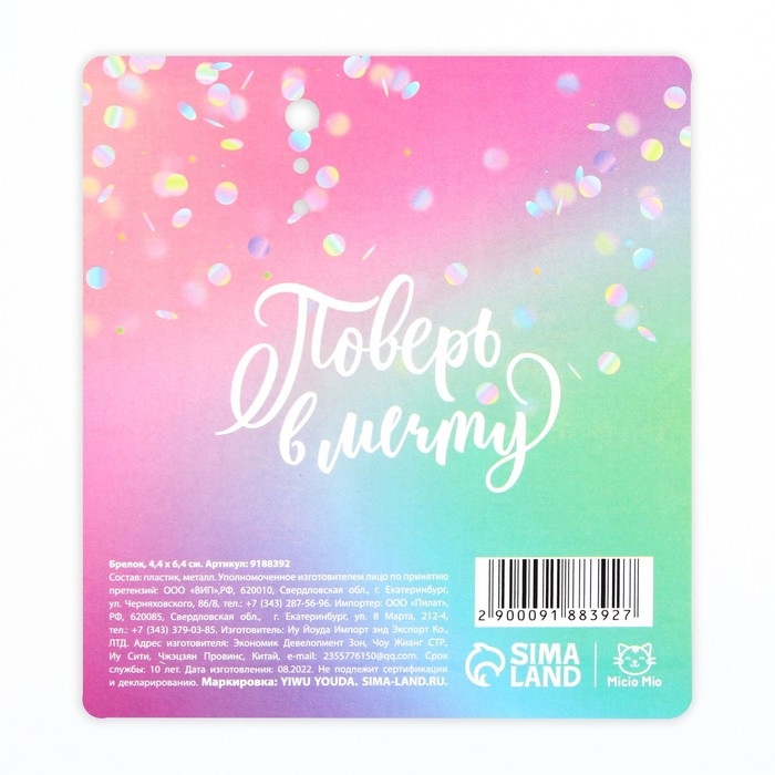 Брелок для ключей детский «Следуй за мечтой», 8.5 х 3.5 см