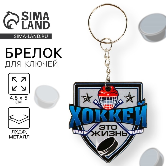 Брелок для ключей деревянный, спорт «Хоккей это жизнь», 4,8 х 5 см