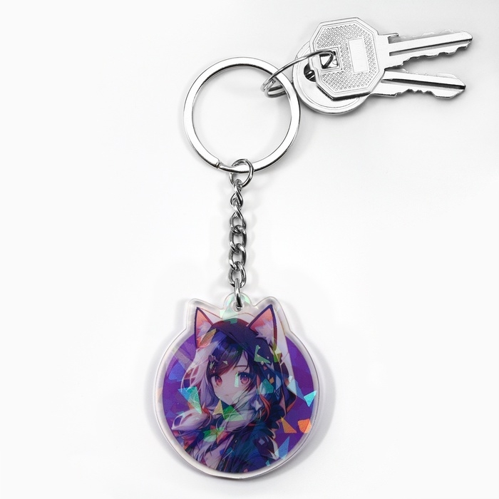 Брелок для ключей голографический «Кошечка», 5 х 4.5 см