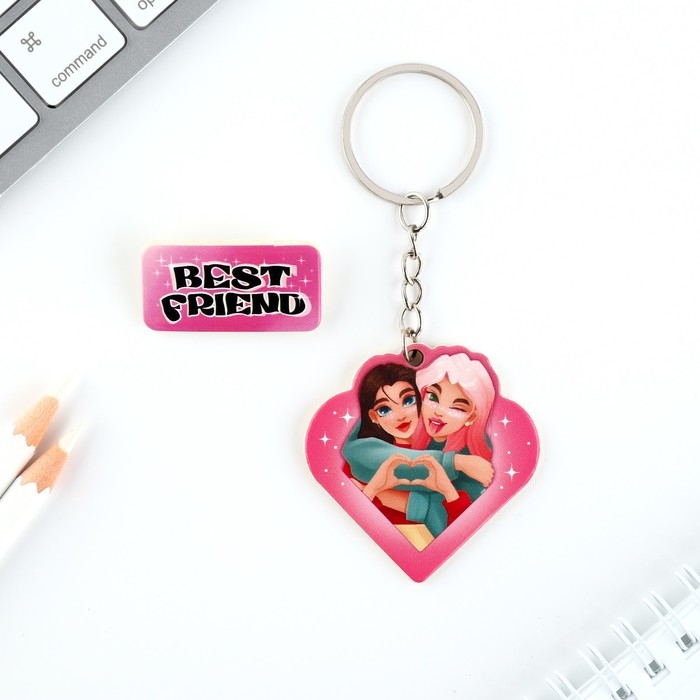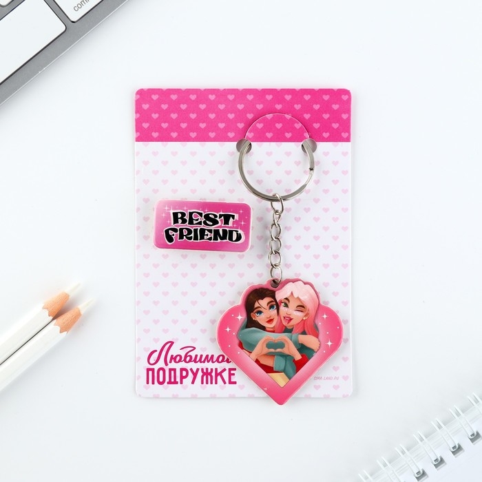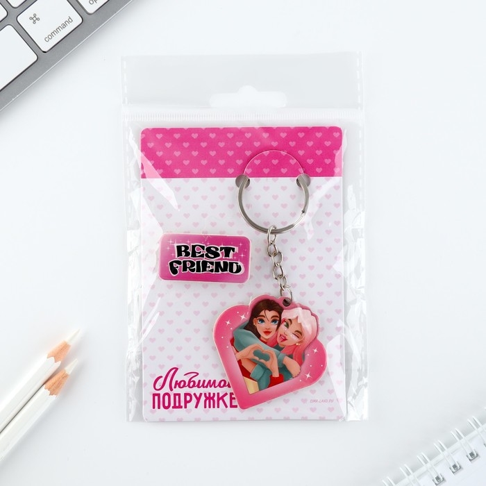 Брелок для ключей, значок, сувенир «Любимой подружке», набор, 6,8 х 10,5 см.