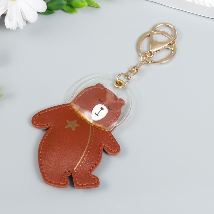 Брелок кожзам с карабином "Мишка-космонавт" 10,3х7,3 см