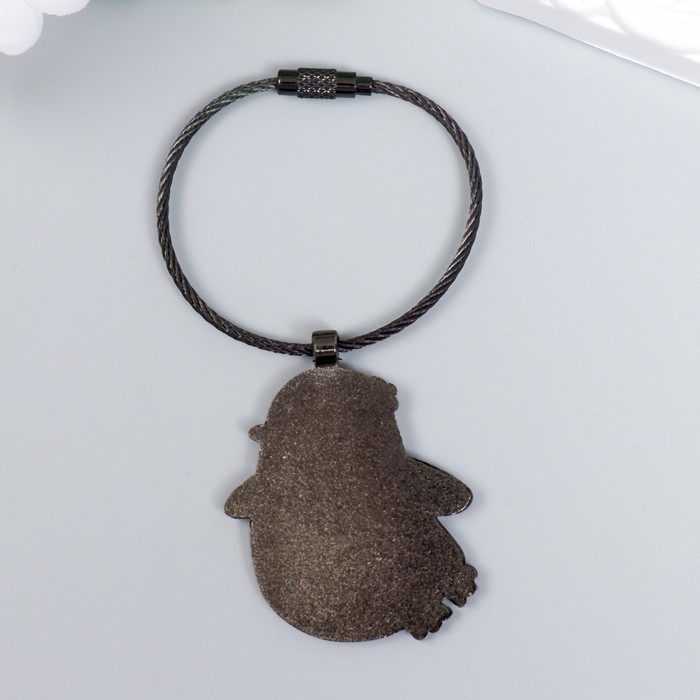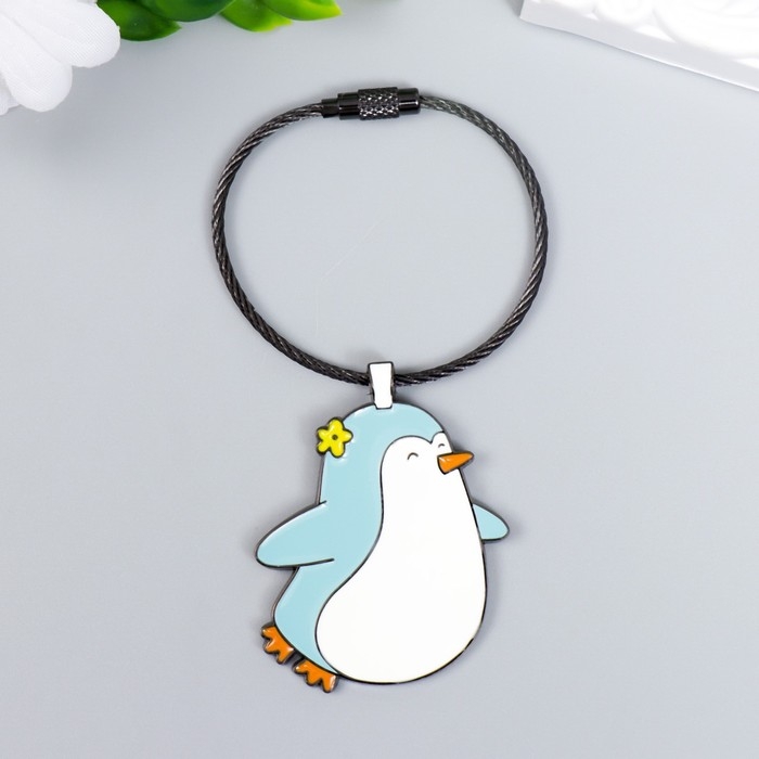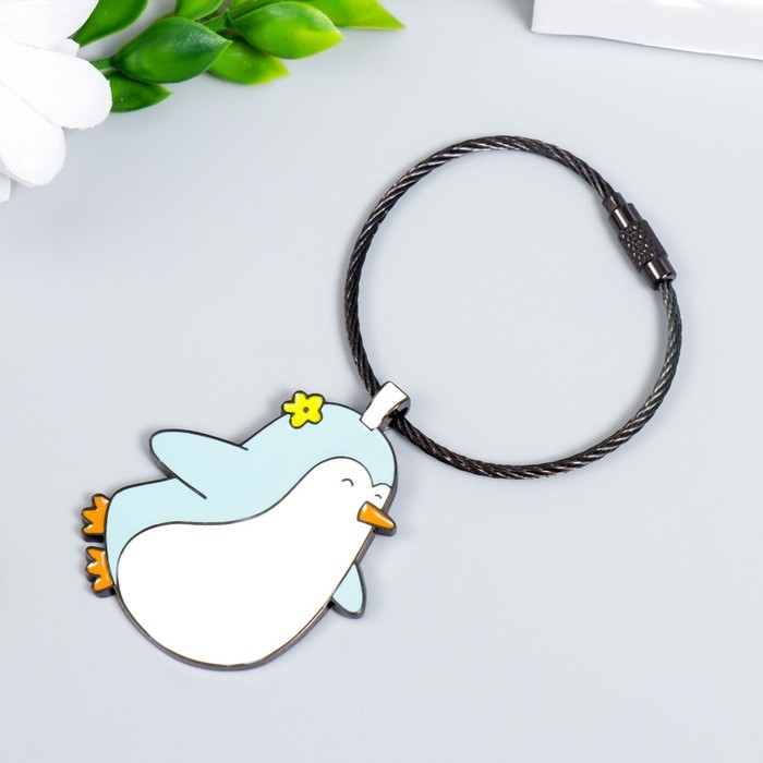 Брелок металл на тросе "Пингвинчик с цветочком" эмаль 9,7 см
