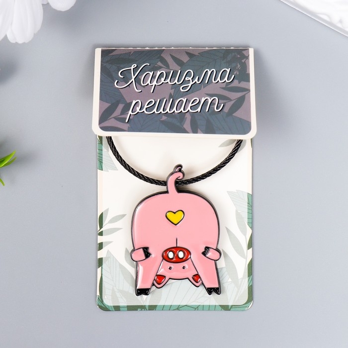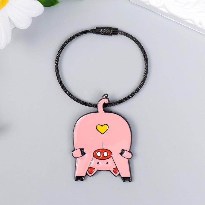 Брелок металл на тросе "Поросёнок, сердечко на попе" эмаль 5,1х3,5 см