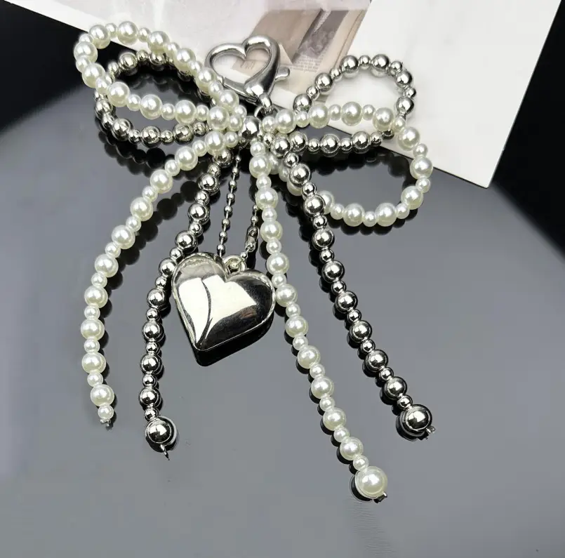 Брелок обвес на сумку жемчуг, металл с серддечком