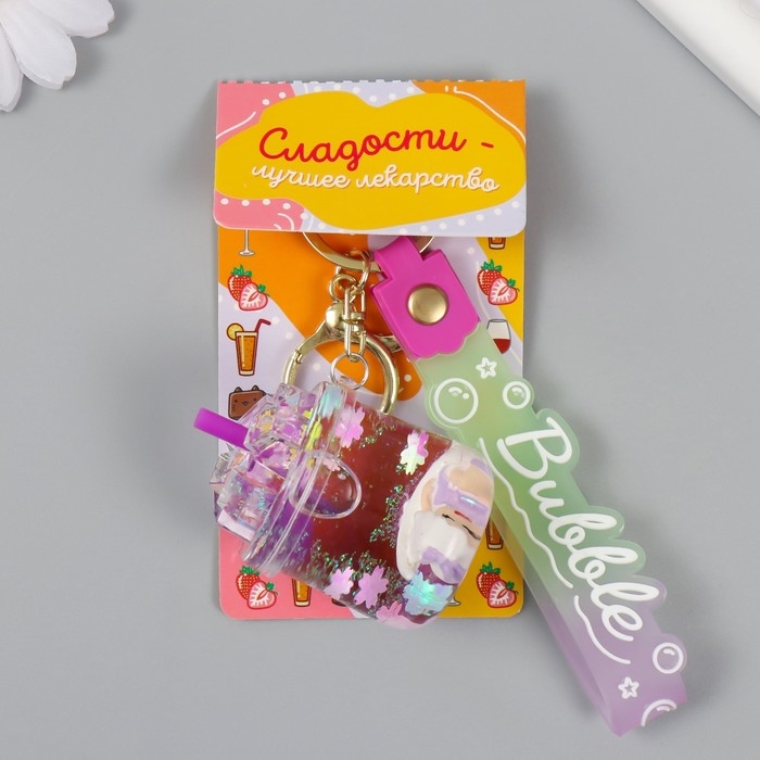 Брелок пластик с карабином, ремешком "Девочка на месяце" водный с декором 4х4х6 см