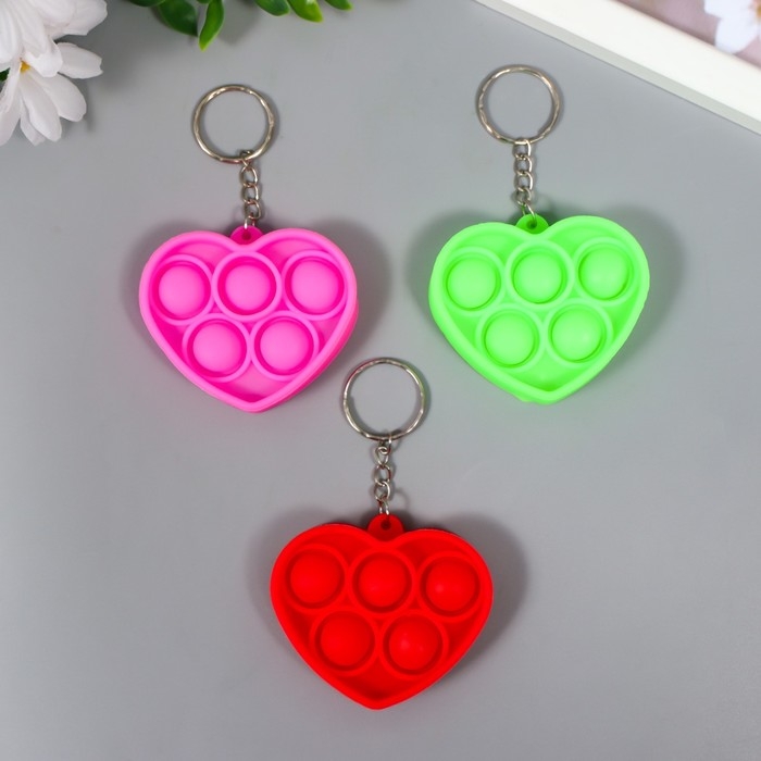 Брелок резина антистресс (бесконечная пупырка) "Сердечко" МИКС 5х5,7х1,3 см